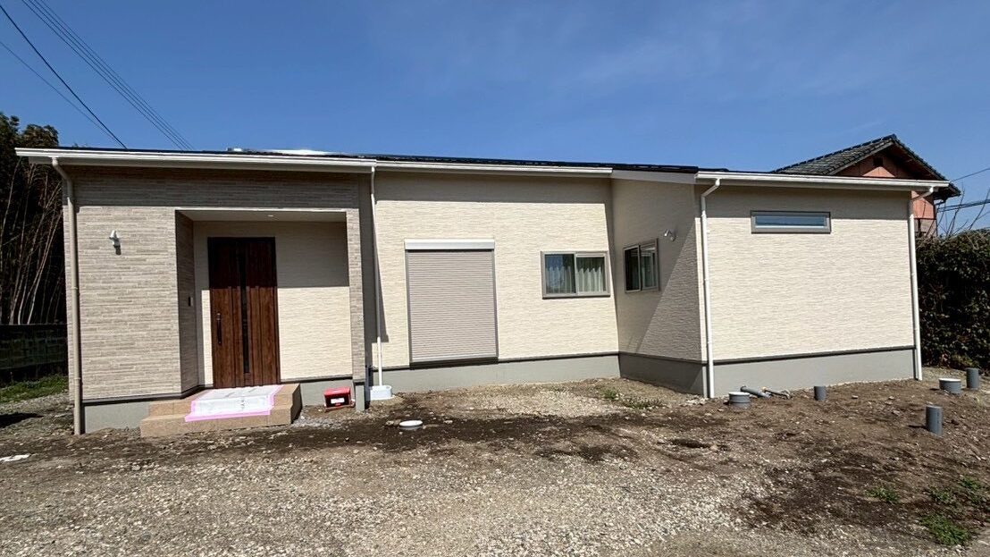 ホワイトをベースに、アクセントとしてベージュを取り入れた外観がやさしい印象の平屋。