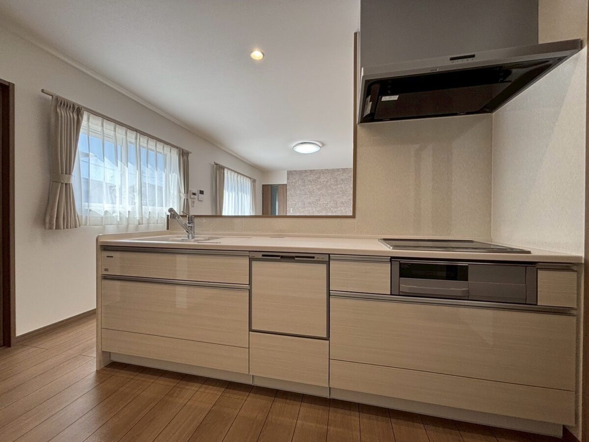 キッチンは空間を見渡せる配置で、家族の様子を感じながら料理ができるレイアウト。