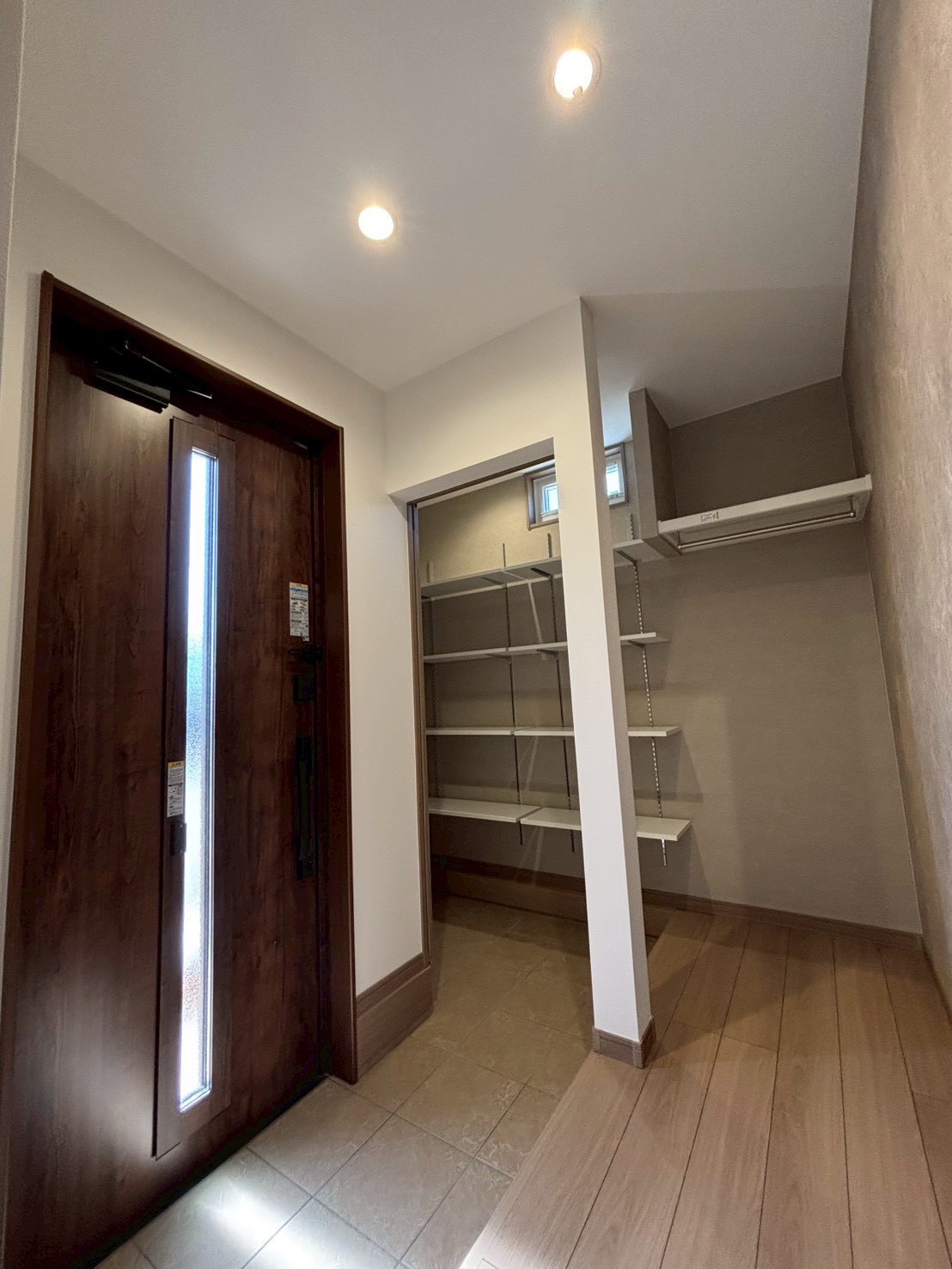 玄関を入るとすぐ横には、使い勝手のよいシューズクロークを設けました。