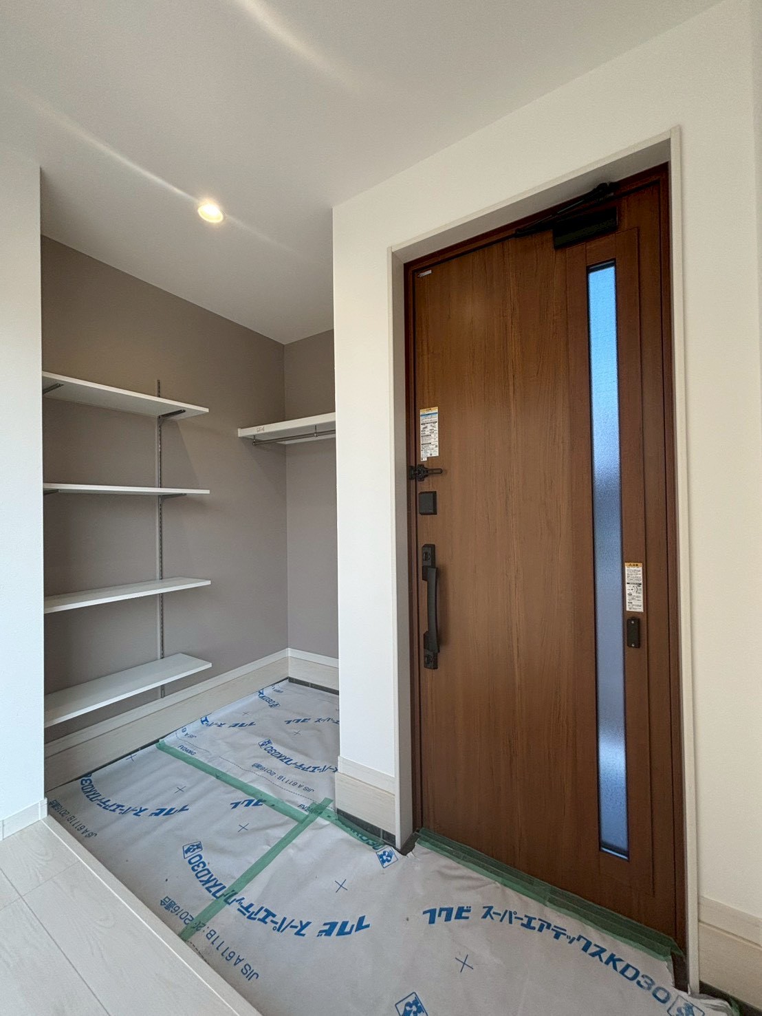 玄関横にはシューズクロークを設け、靴はもちろん、アウトドア用品や季節物もしっかり収納できる空間になっています。