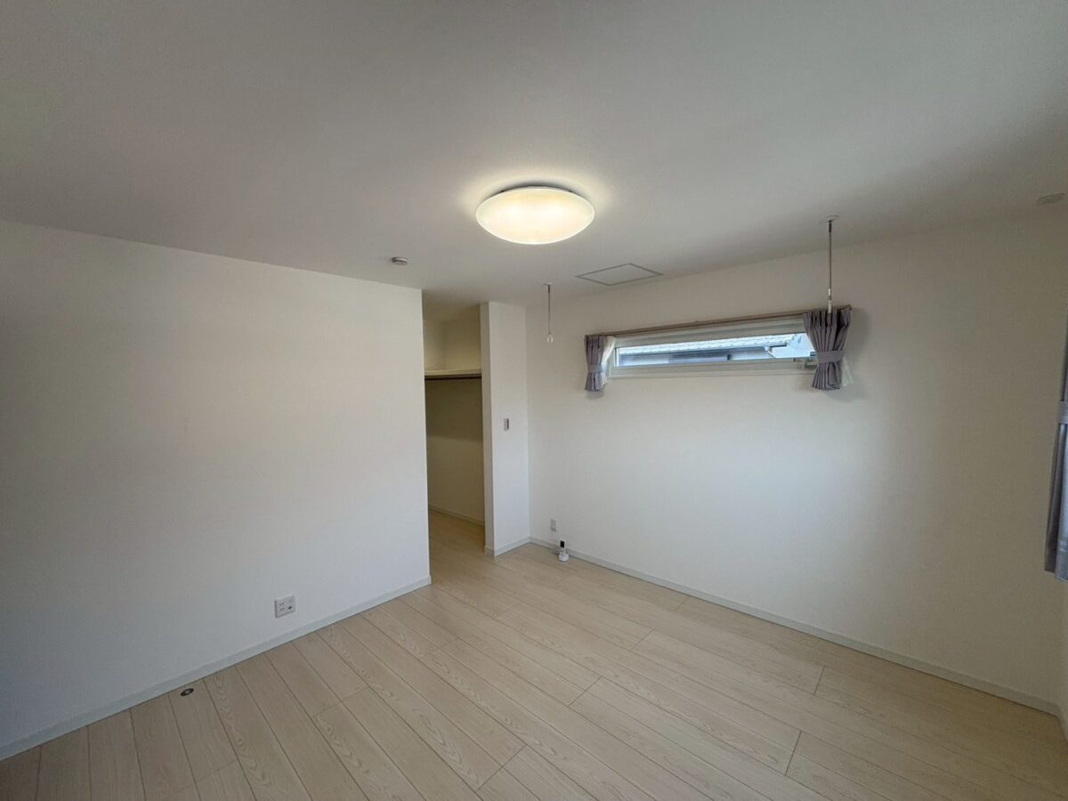 主寝室には大容量のウォークインクローゼットを備え、衣類や季節物もまとめて収納可能。