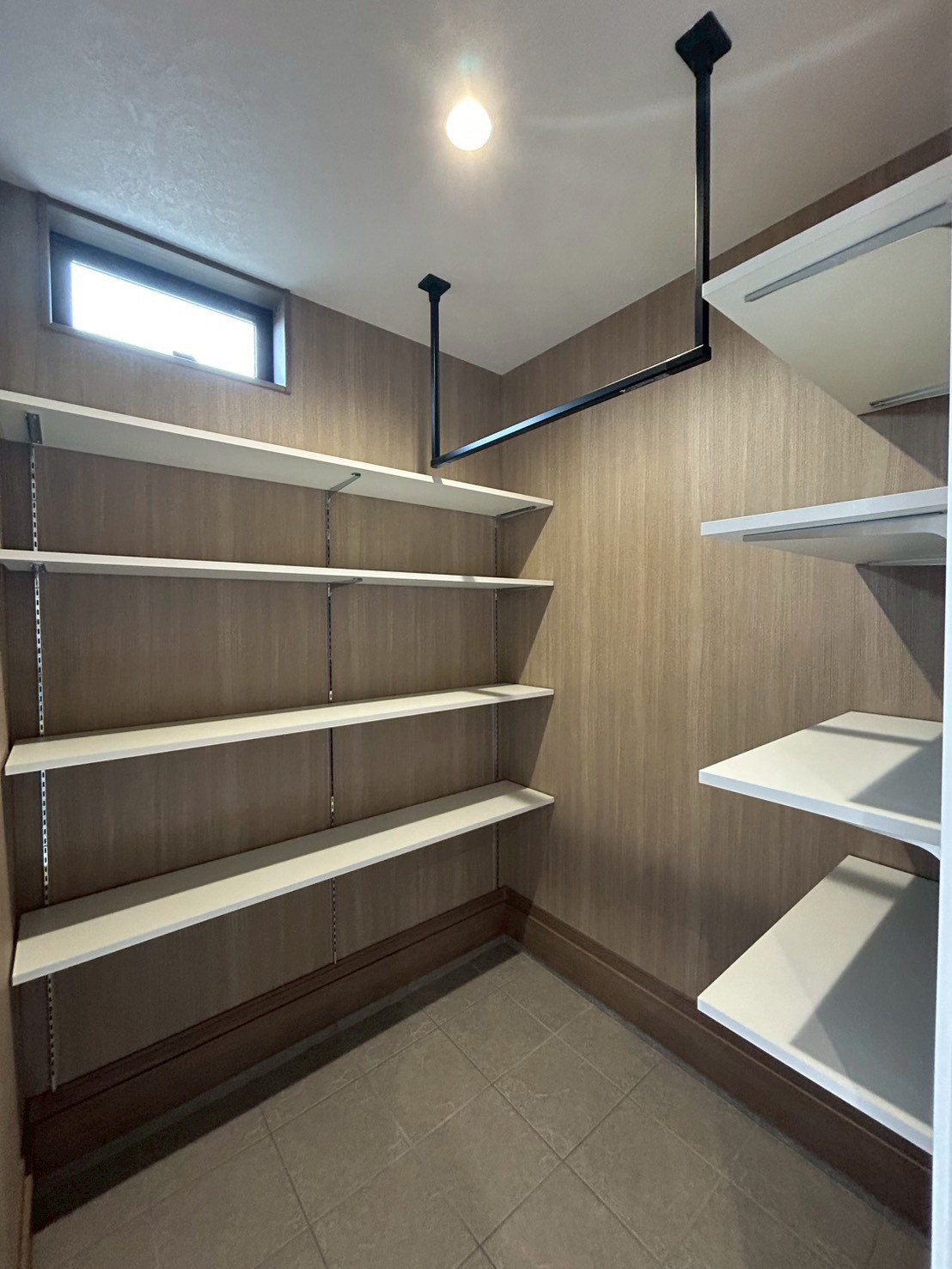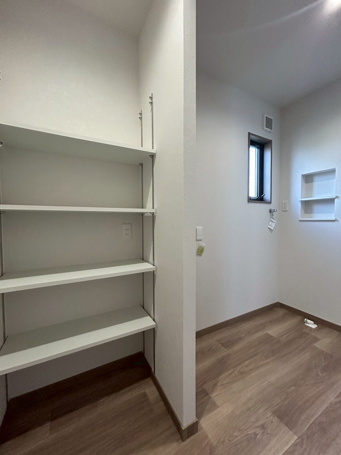 さらに玄関の反対側には、キッチンへとつながるパントリーを配置しました。買い物から帰ってきたら、そのまま荷物を収納してキッチンへ行ける動線になっているので、毎日の家事がとてもラクになります。共働きのご家族にも人気の間取りです。
