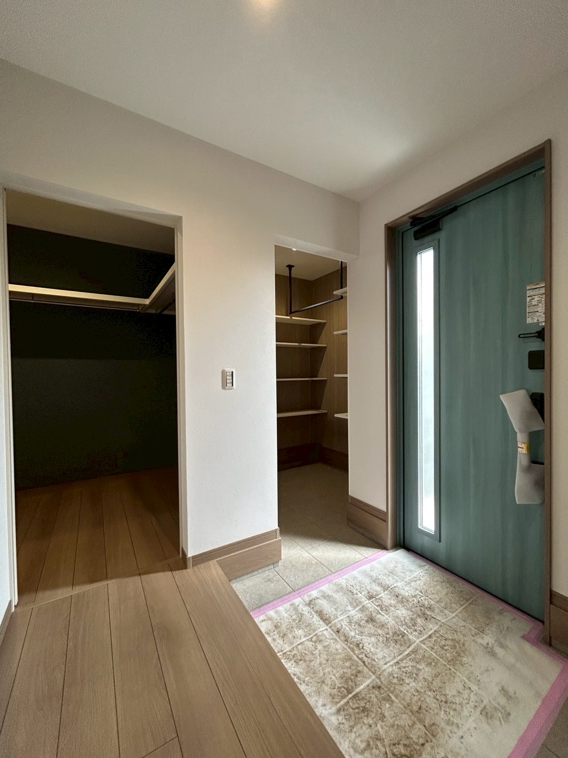 玄関ドアを開けると、すぐ横にはシューズクロークを設けました。