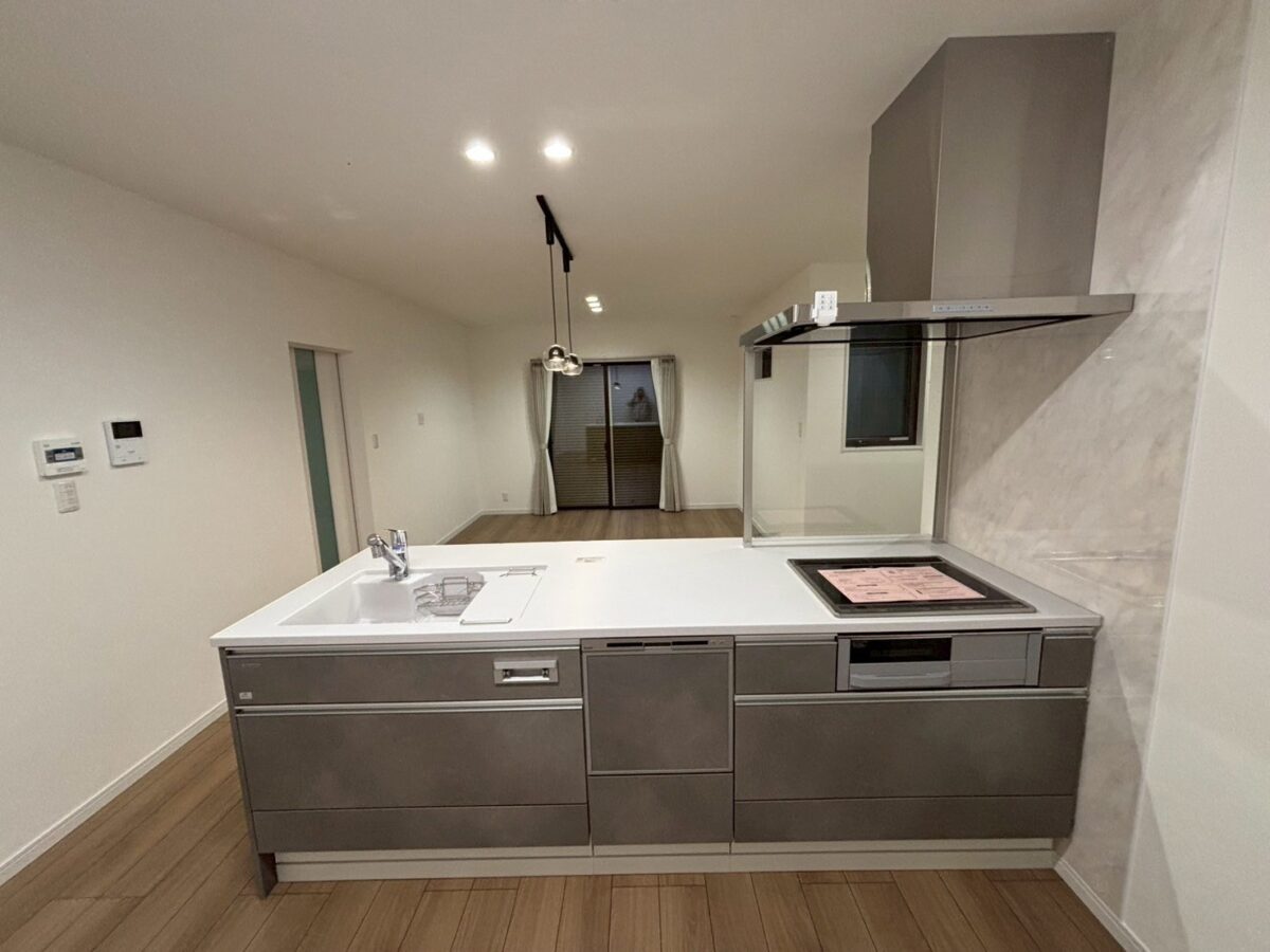 キッチンは、家族との会話が自然と弾むフラット対面キッチンを採用。