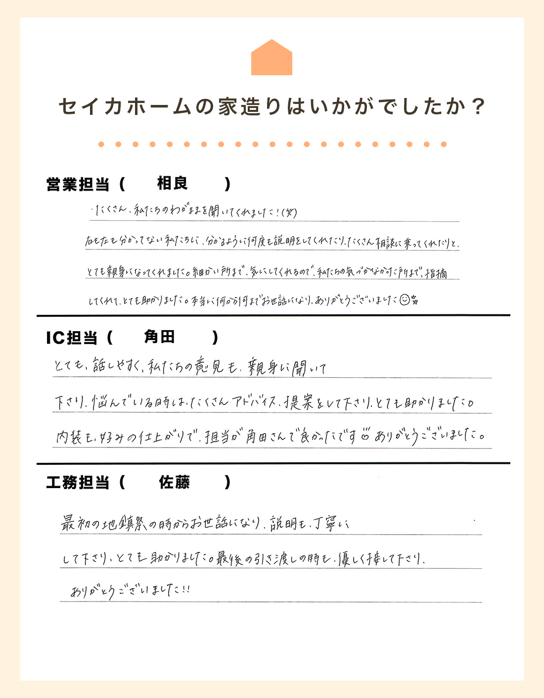 株式会社セイカホームは熊本のローコスト注文住宅ハウスメーカーです。超ローコスト968万円注文住宅「ハピネスエイチ」を始め、低価格で住宅性能に優れた新築注文住宅を提供しています。ローコスト平屋「ハピネスエイチ」、人気の「スマイル」、低価格&使いやすい間取りが嬉しい「ままはぴ」、平屋の注文住宅「縁-EN-」なども好評です。セイカホームは人々が日々を暮らす「家」と「快適な住まいづくり」を通じて、熊本と福岡の皆様の普段の生活をもっと豊かにする地域の工務店でありたいと考えています。また、セイカホームの特徴は「住宅ローンに強い」こと。住宅ローン各種(フラット35・フラット40・おまとめローンなど)・住宅ローン相談随時実施中です!