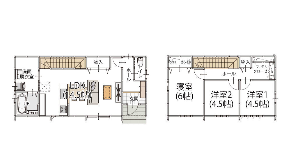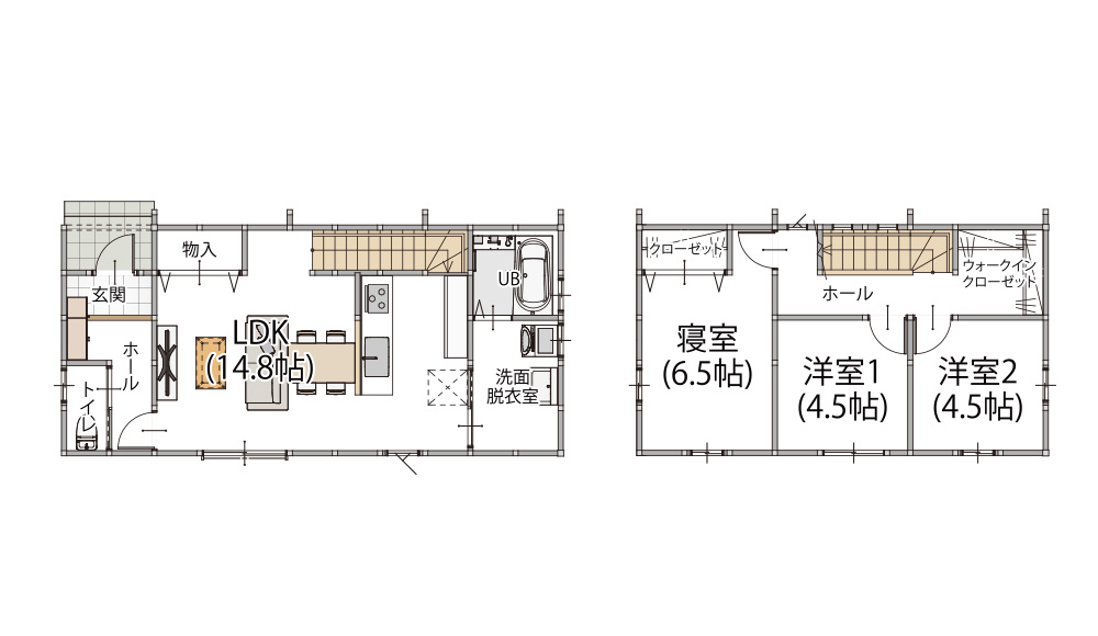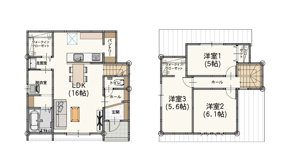 商品の坪数によって間取りは自由設計が可能です。
